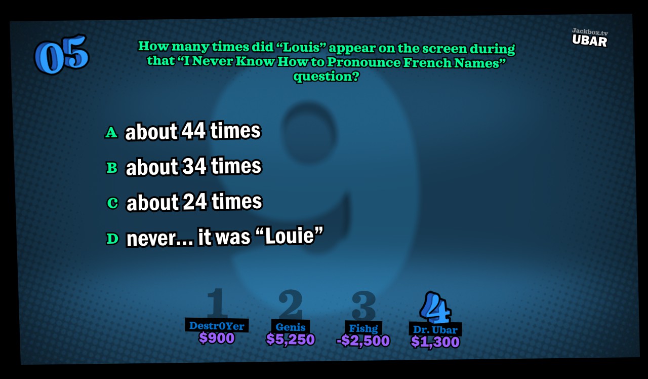 An example of the multiple choice questions in YDKJ Full Stream